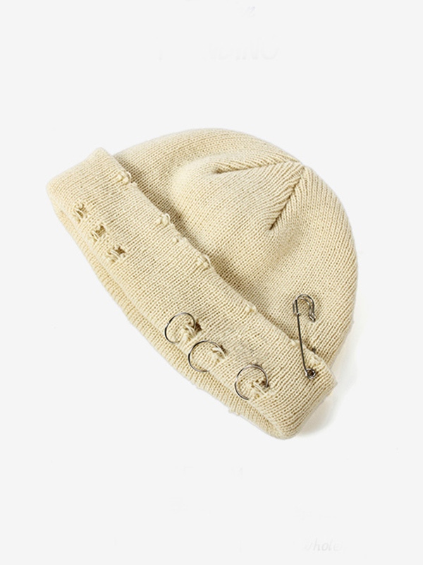 Gorro Beanie de punto desgastado Safety Pin