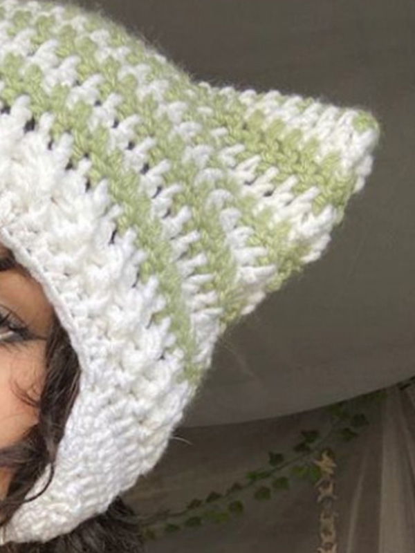 Gorro de punto con rayas de orejas de gato hecho a mano