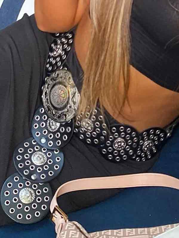 Cinturón de hebilla con diseño de remache en forma de disco