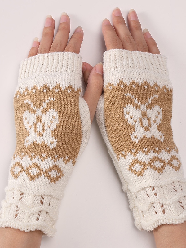 Guantes sin dedos de punto jacquard con mariposas