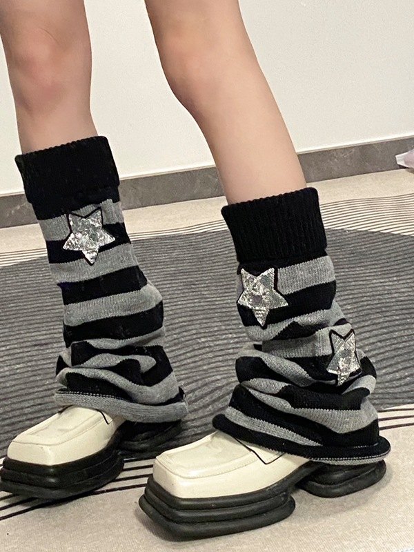 Calentador de piernas a rayas con estrellas de lentejuelas