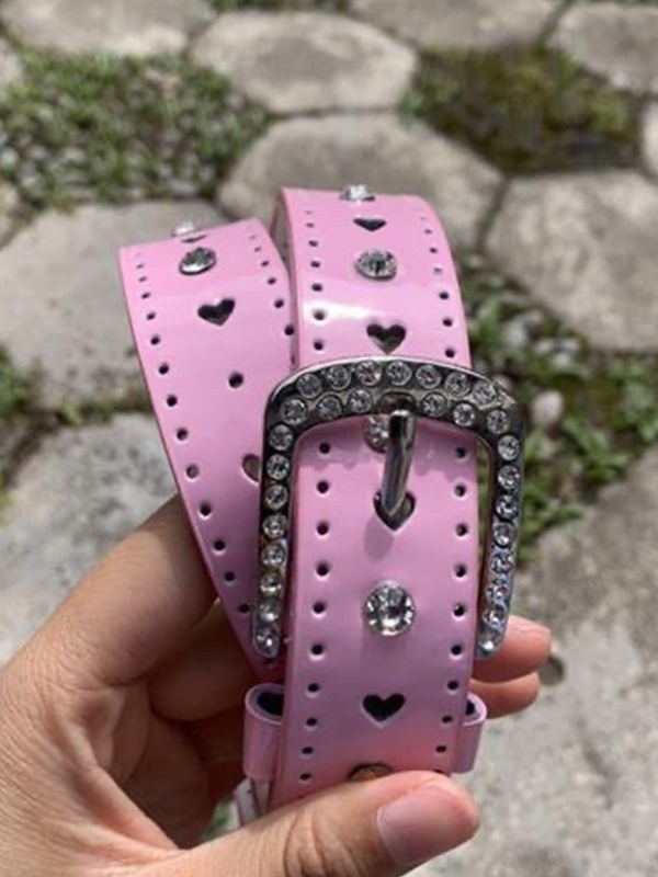 Cinturón con hebilla de diamantes de imitación brillante con recorte de corazón Y2K