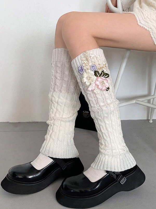Calentador de piernas tejido trenzado con bordado floral