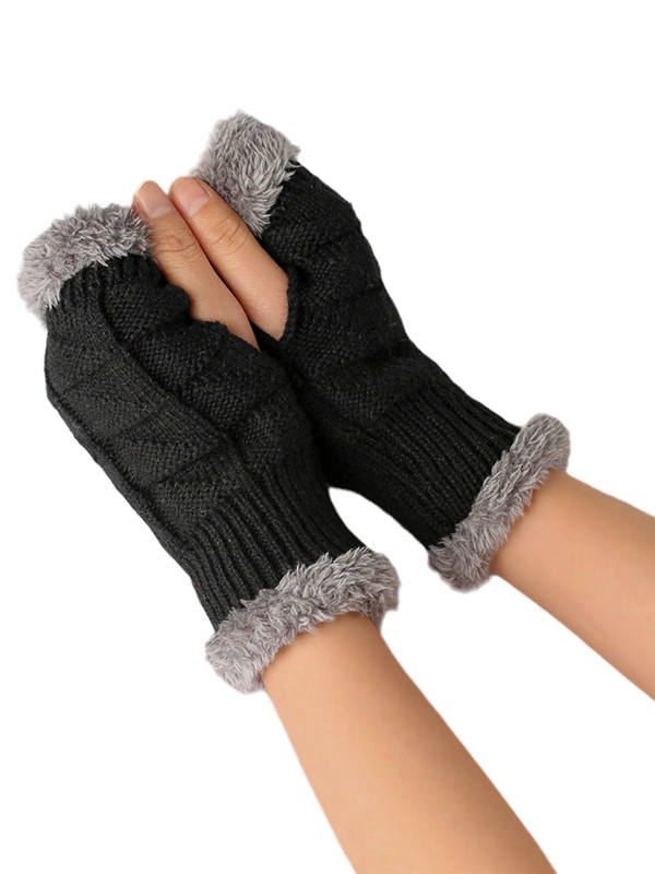 Guantes de punto sin dedos gruesos y cálidos con forro polar
