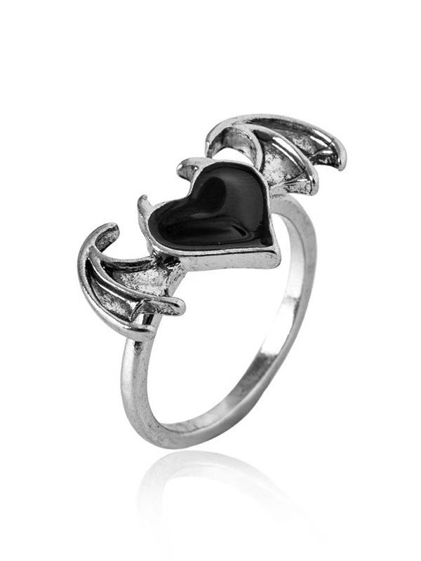 Anillo con colgante de corazón alado punk