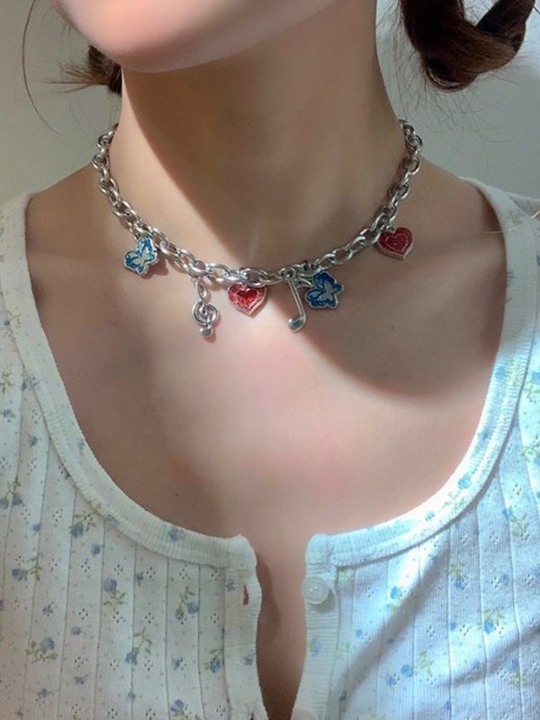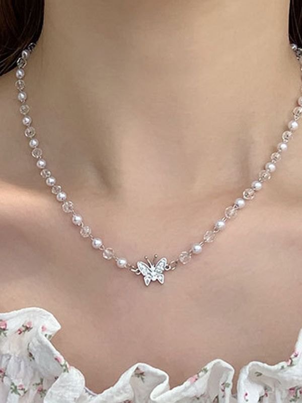 Collar de cuentas con colgante de mariposa de diamantes de imitación