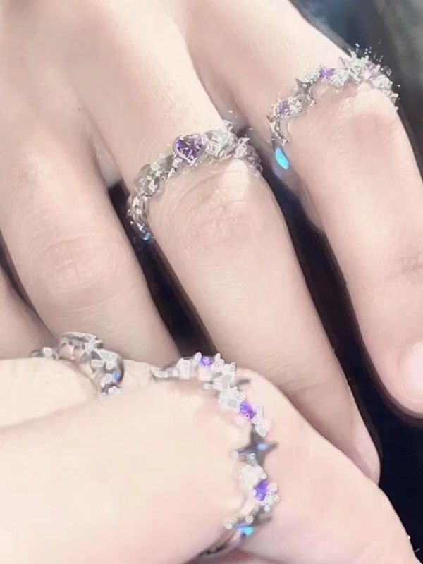 Anillo abierto con diamantes y corazón de estrella