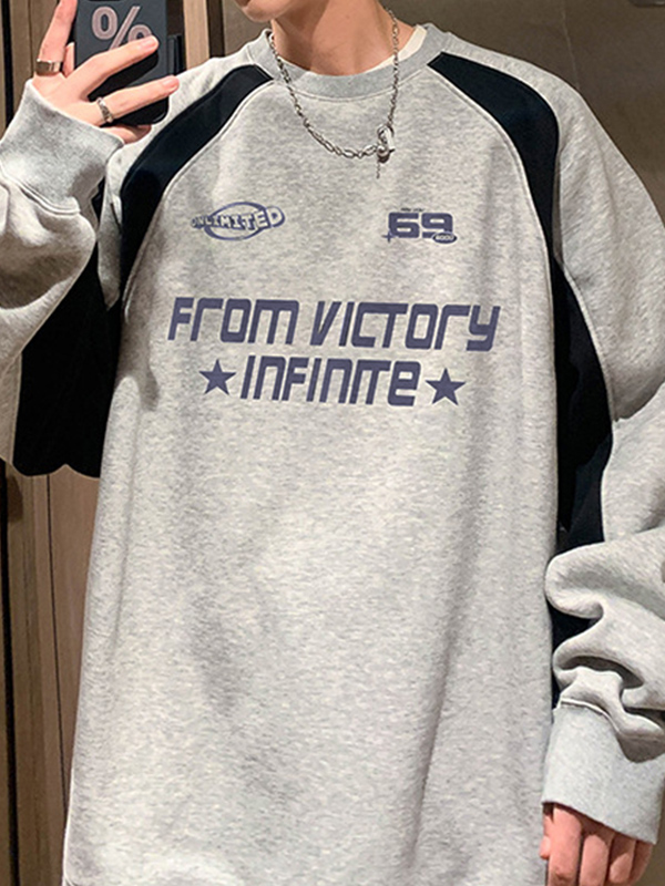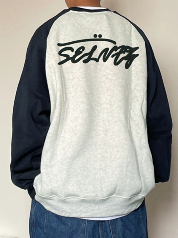 Sudadera con empalme raglán y estampado de letras retro para hombre