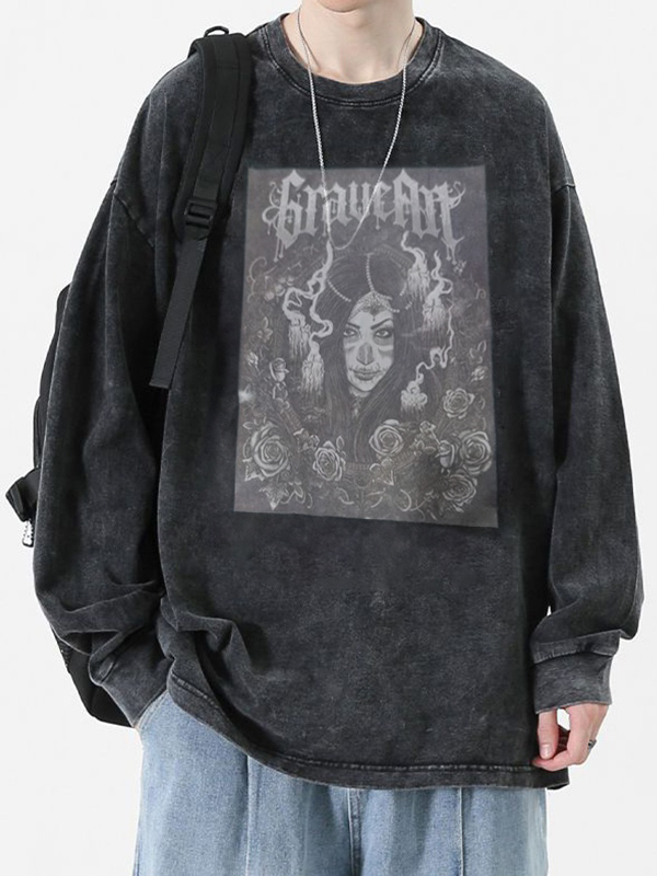 Sudadera con estampado de retrato desgastado para hombre