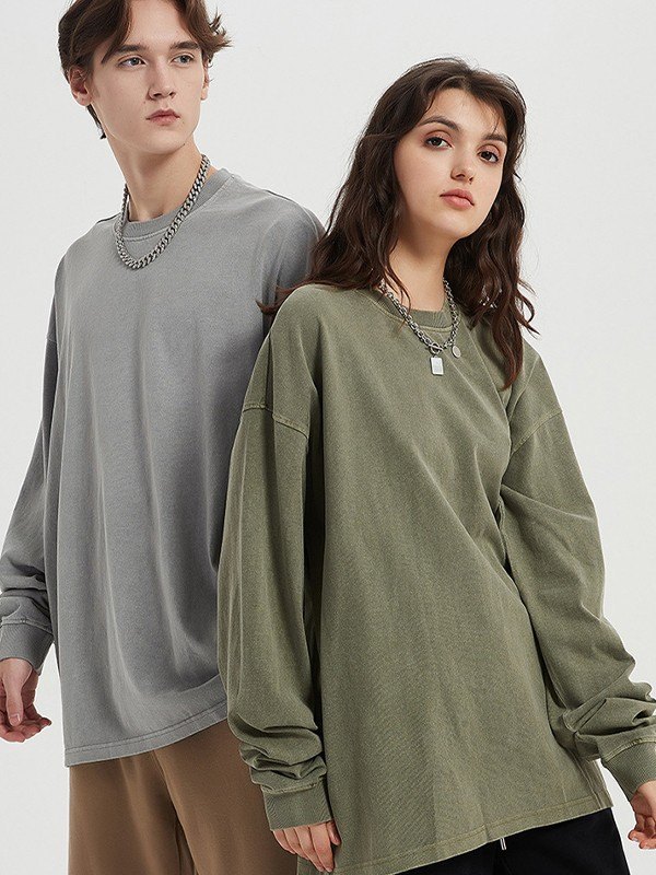 Sudadera unisex con cuello redondo y lavado vintage