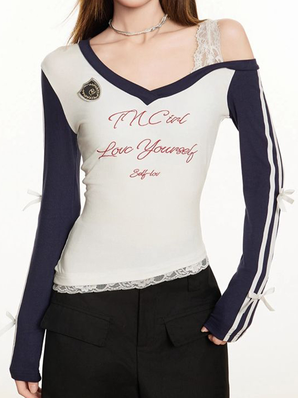 Jerseys de manga corta con cuello en V y estampado de letras