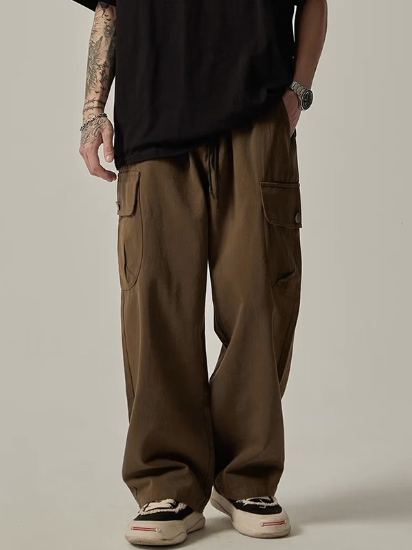 Pantalones cargo holgados con bolsillo con botones vintage para hombre