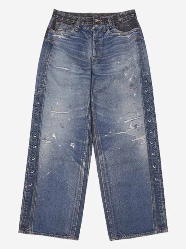 Vaqueros estampados con tiras laterales en la cintura unidas