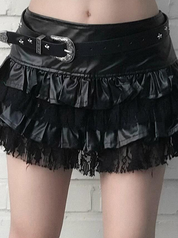 Minifaldas de cuero con empalmes y efecto adelgazante de talle bajo