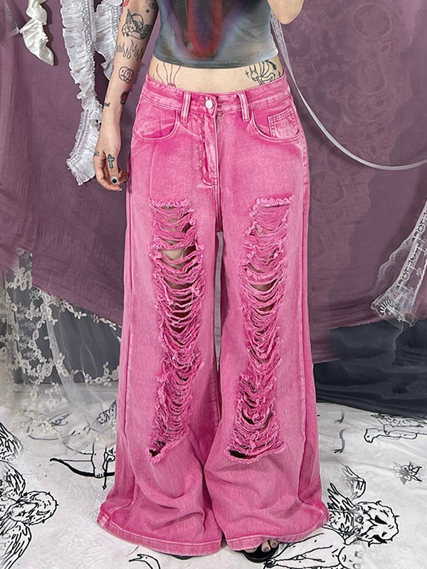 Vaqueros rotos con agujeros distintivos
