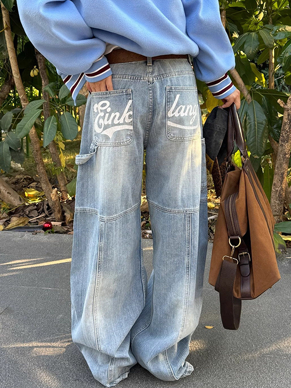 Vaqueros holgados con piernas anchas, color azul, holgado, retro japonés
