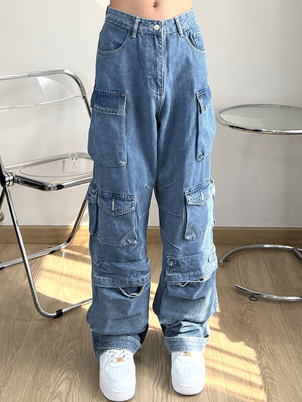 Vaqueros cargo con múltiples bolsillos Hip Pop para hombre