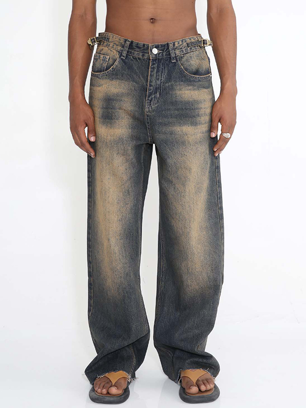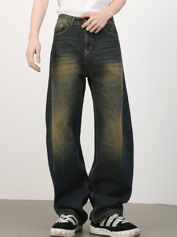Vaqueros holgados con lavado desgastado y degradado para hombre