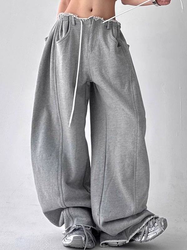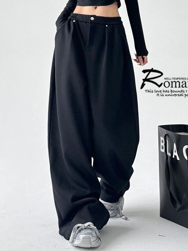 Pantalones anchos con cintura doble y diseño de patchwork y rayas en la cabeza