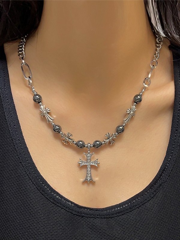 Collar con colgante de cruz con cuentas