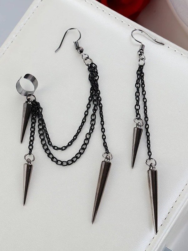 Pendientes colgantes de remache de cadena con borla punk