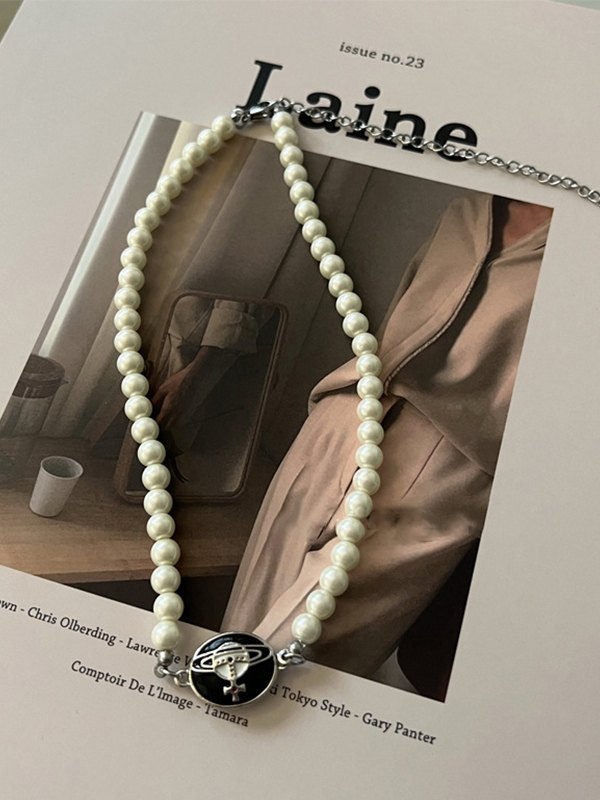 Collar de perlas de imitación con dije de esmalte