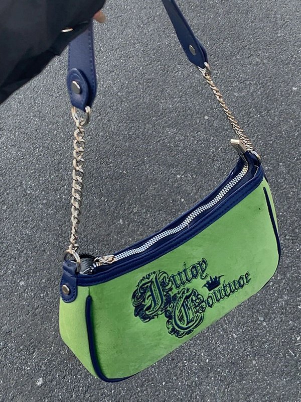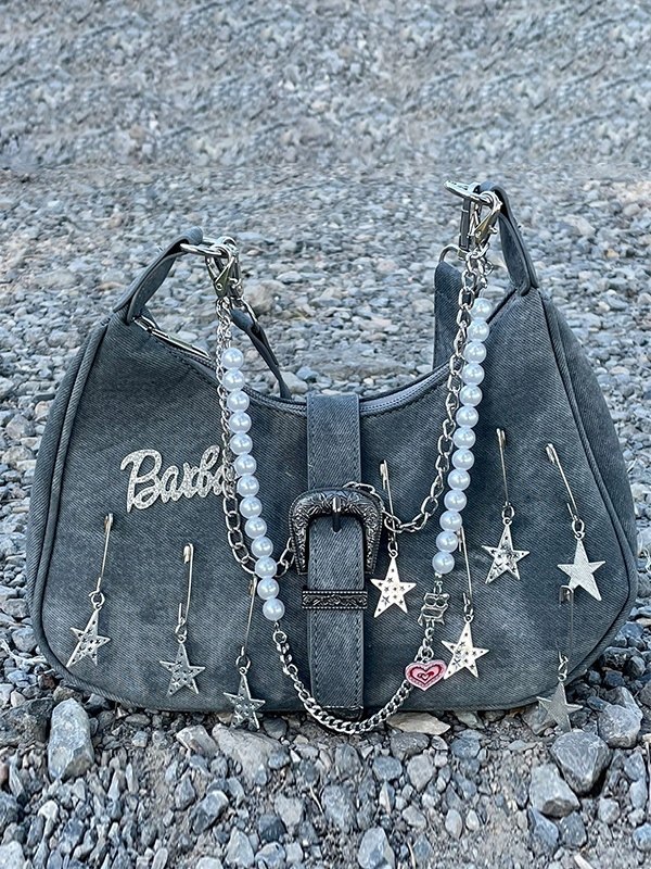 Bolso bandolera Y2K de mezclilla con detalle sin rematar, cremallera y lazo en la parte delantera