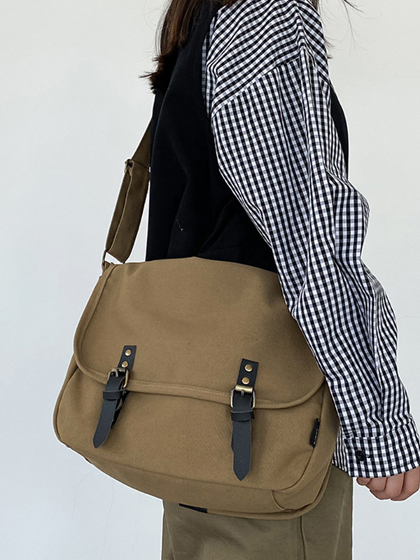 Bolso bandolera de nailon a cuadros con correa de hebilla