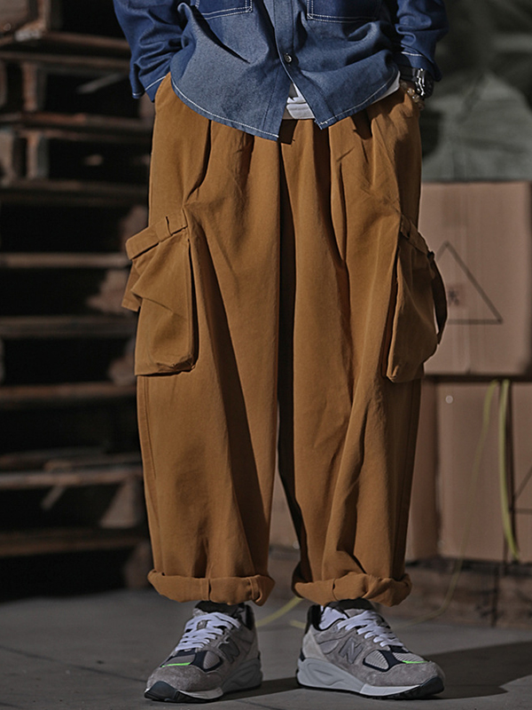 Pantalones cargo casuales sueltos con bolsillo lateral retro para hombre