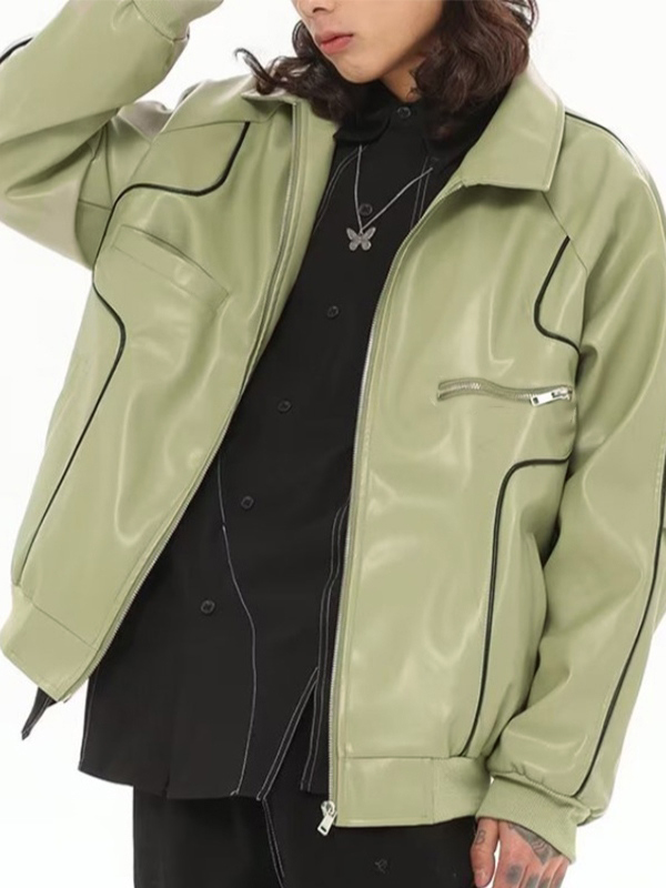 Chaqueta de piel sintética con cremallera y detalle de ribetes