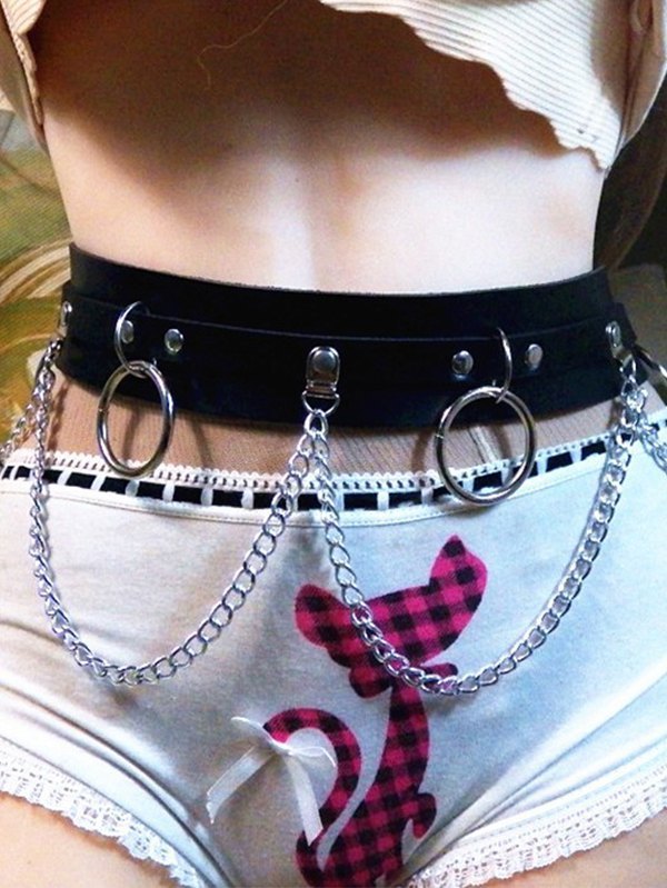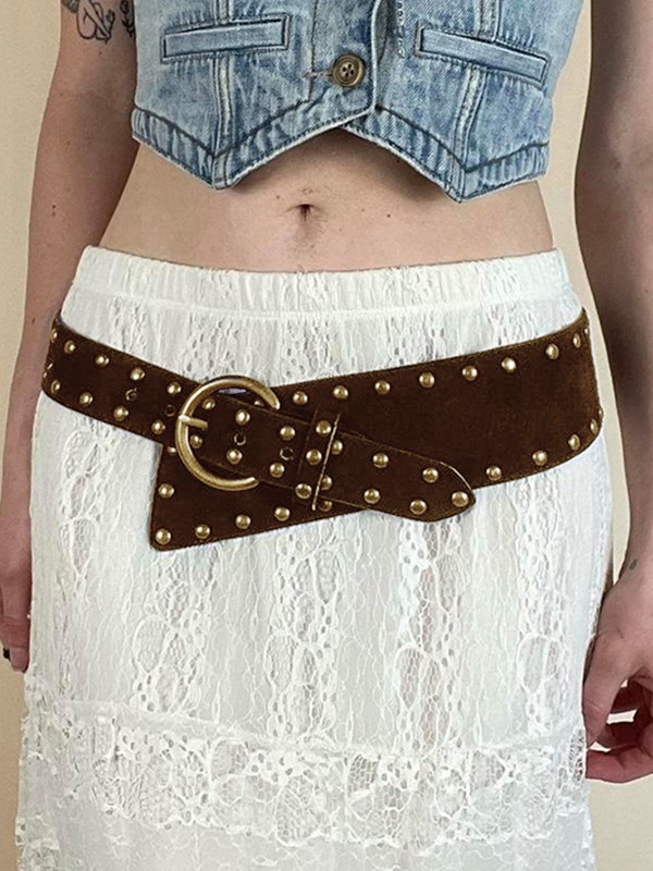 Cinturón con hebilla de metal y ojales con costura de piel estilo vintage
