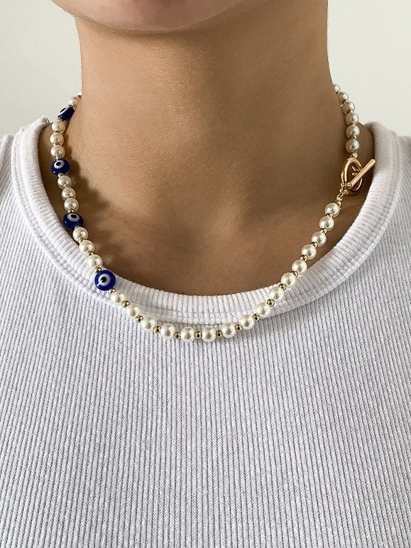 Collar de perlas de imitación de perlas de piedra de colores boho