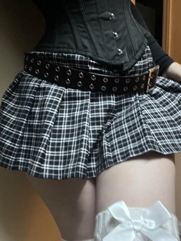 Minifaldas de cuadros retro de cintura baja para reducir la edad