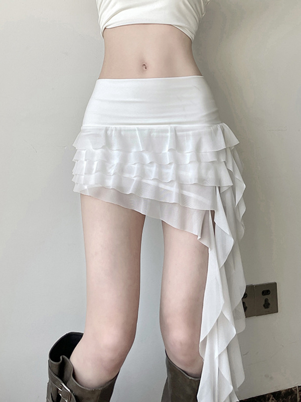 Minifalda irregular con volantes estilo resort