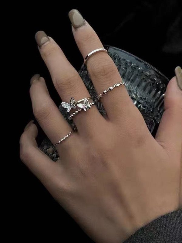 Juego de anillos de mariposa torcida de 4 piezas
