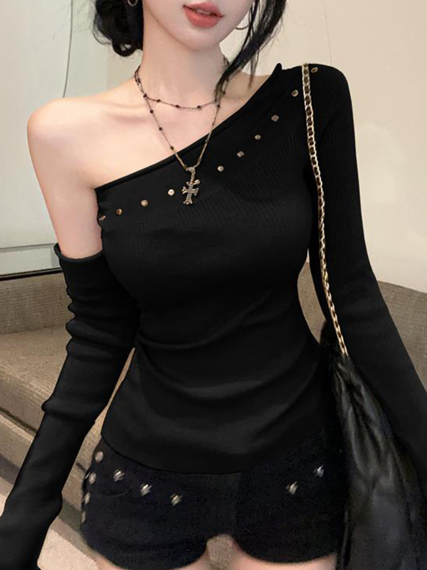 Jerseys de manga larga con hombros descubiertos y asimétricos retorcidos