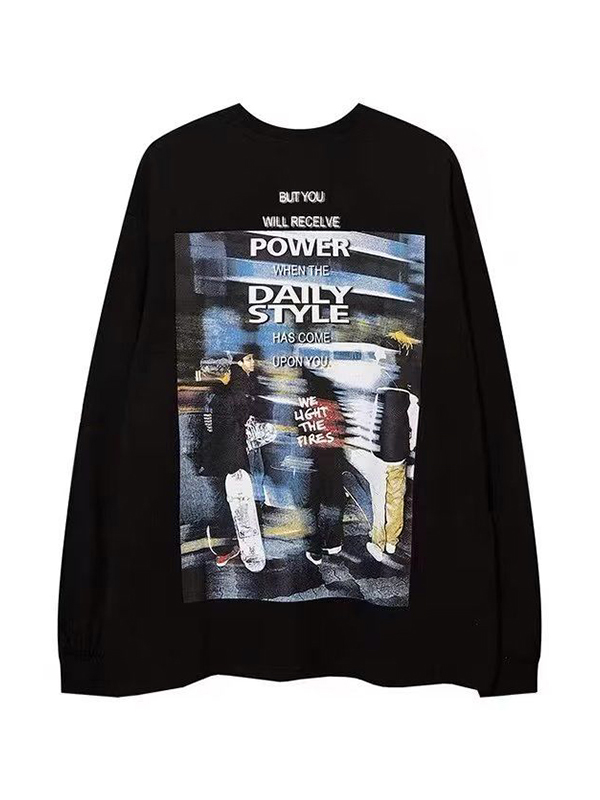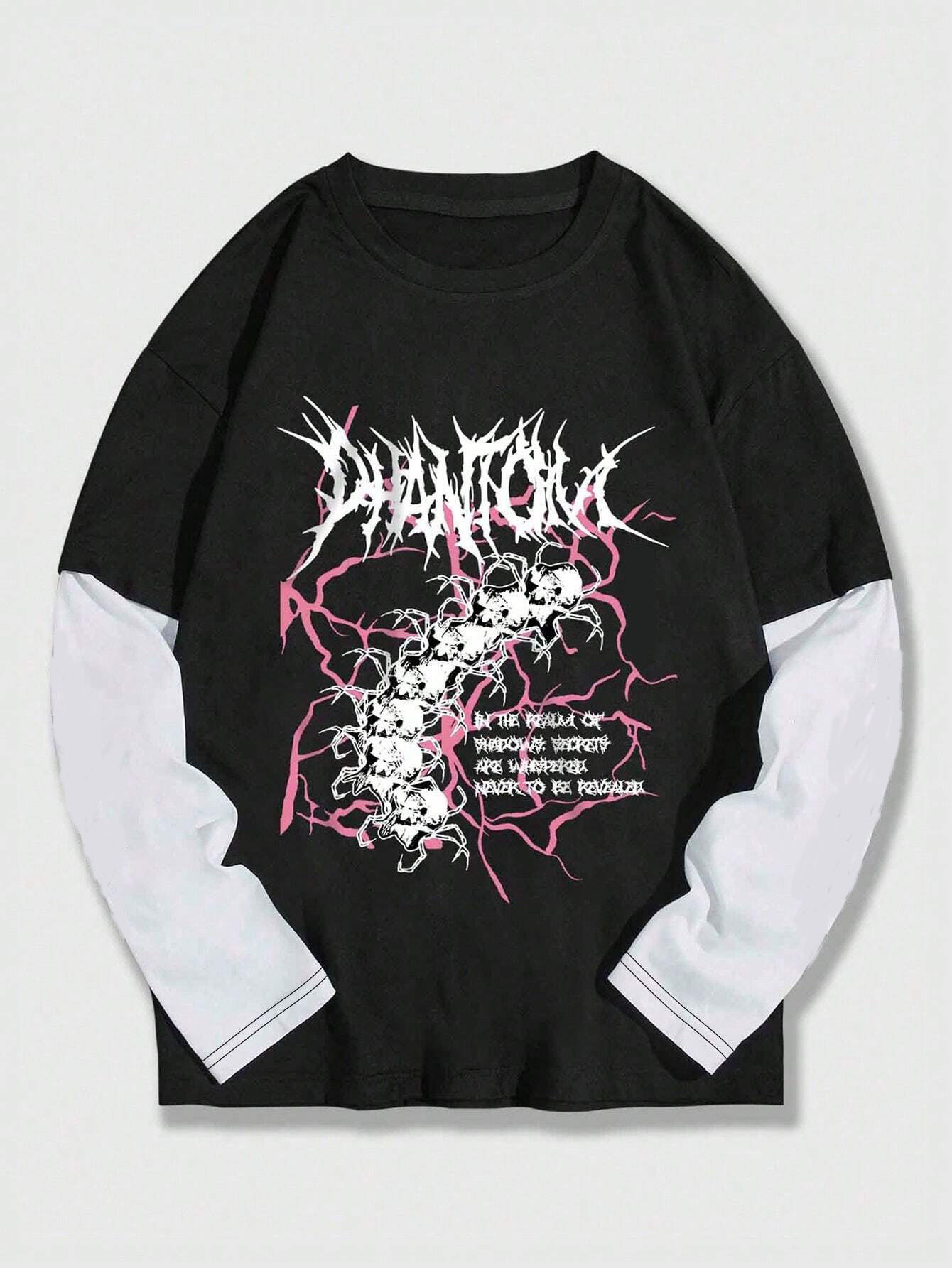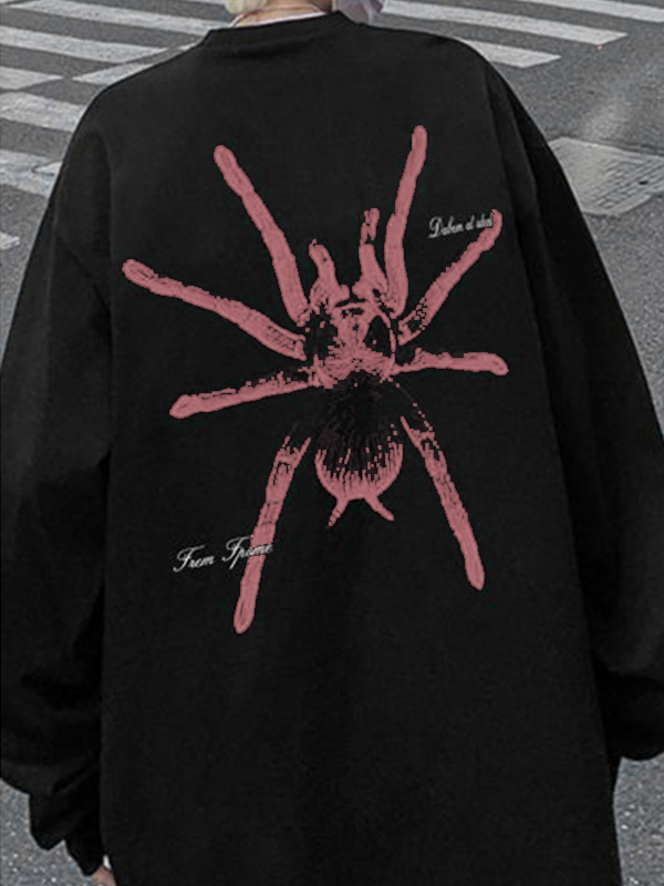Camiseta de manga larga con estampado de araña y letras para hombre