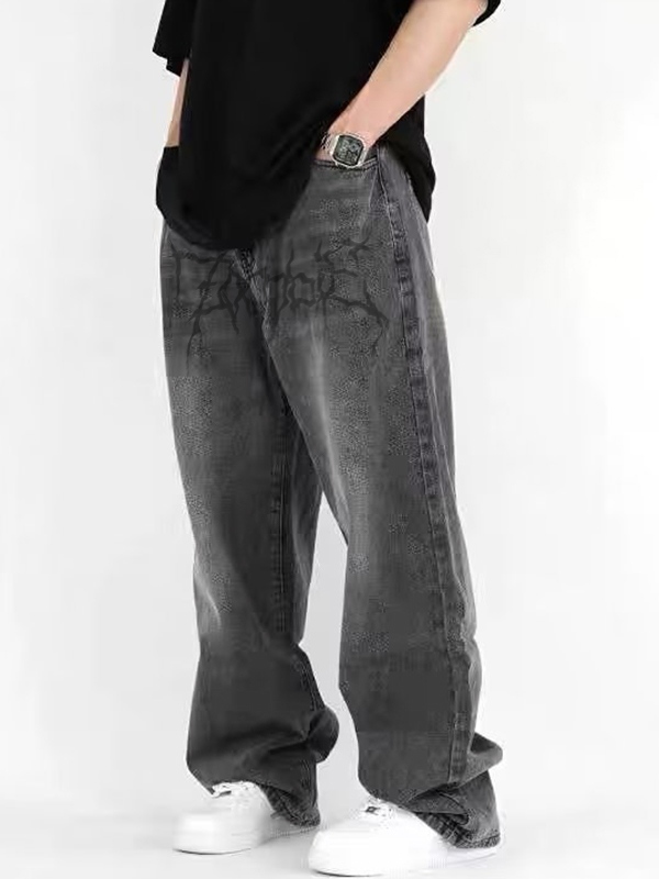 Jeans sueltos con lavado claro y letras bordadas para hombre