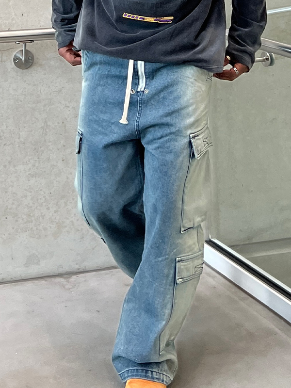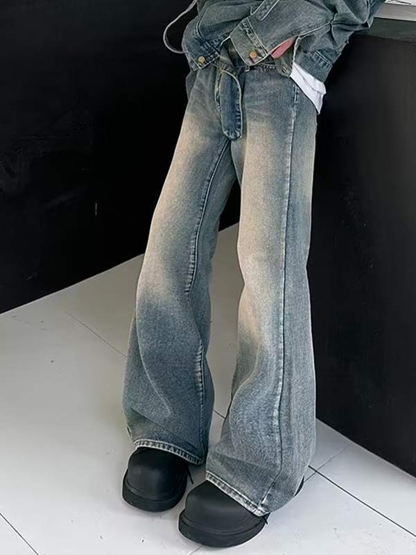 Vaqueros holgados acampanados con lavado vintage para hombre