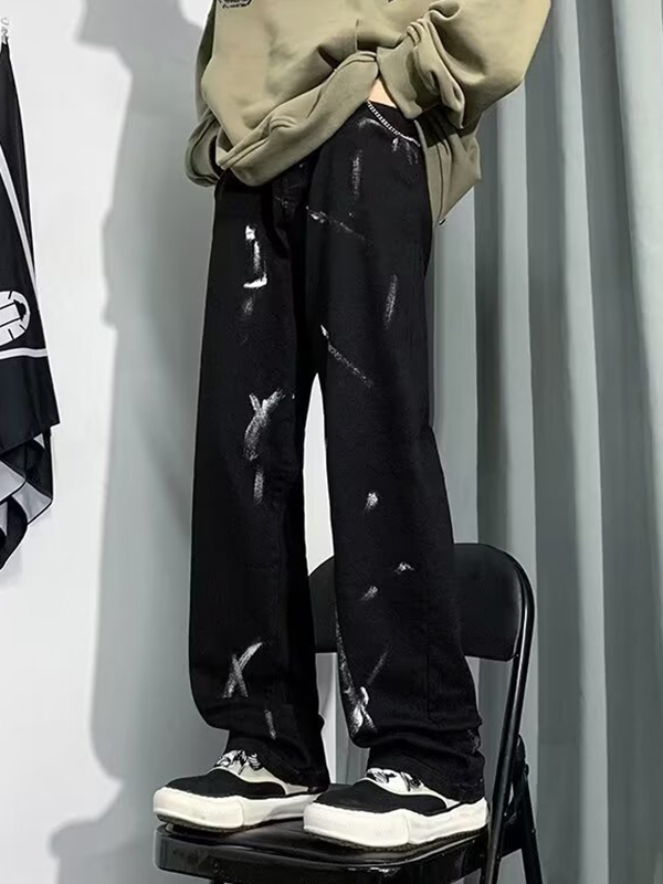 Vaqueros holgados con estampado craquelado lavado para hombre