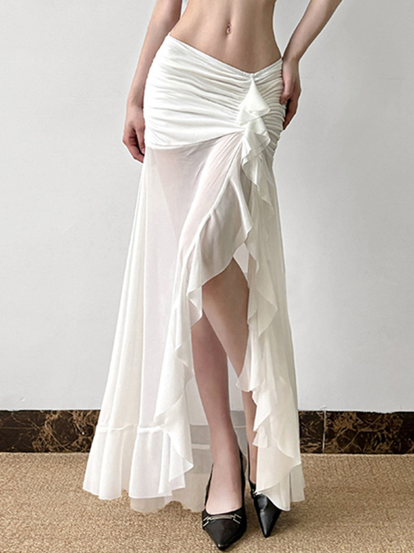 Falda larga con abertura irregular y volantes