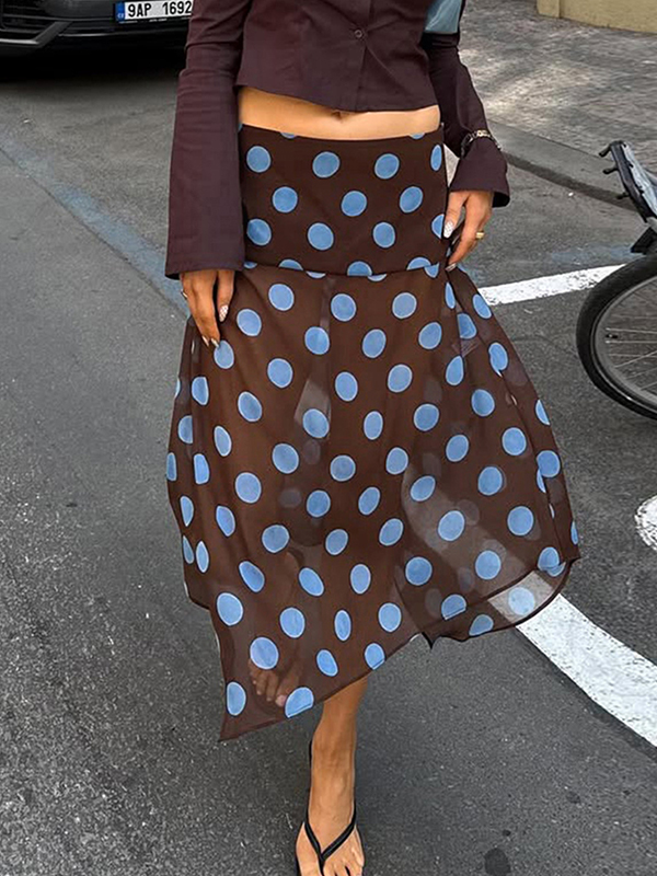 Falda larga con estampado de lunares retro de moda