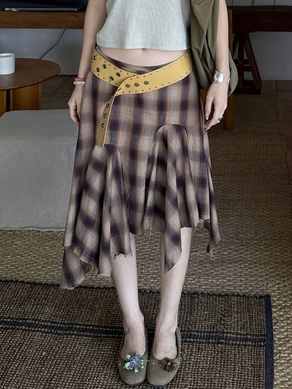 Falda larga de patchwork a cuadros retro