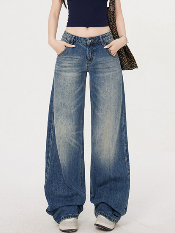 Vaqueros boyfriend con bordado retro de flor de ciruelo