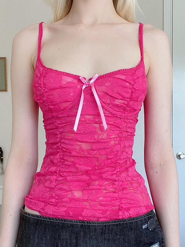 Top de encaje con lazo en el cuello