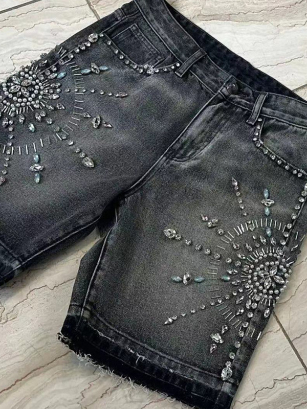 Shorts vaqueros rectos con diseño de diamantes