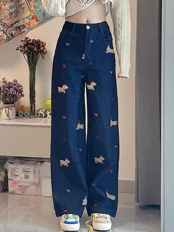 Vaqueros estilo boyfriend con bordados creativos retro americanos
