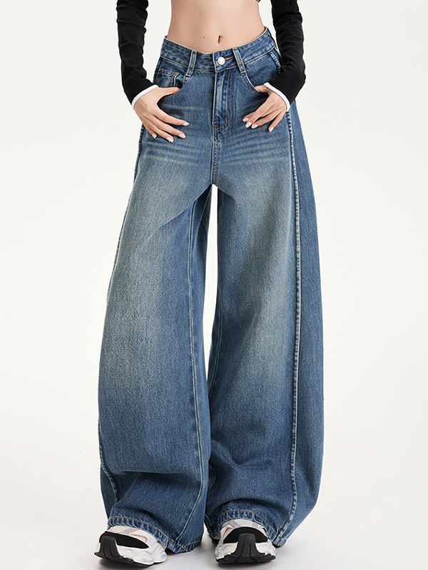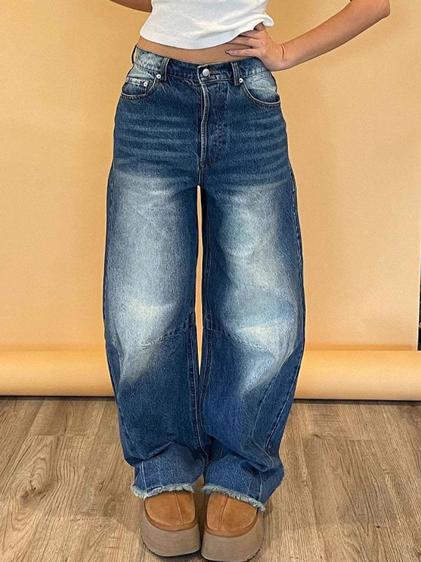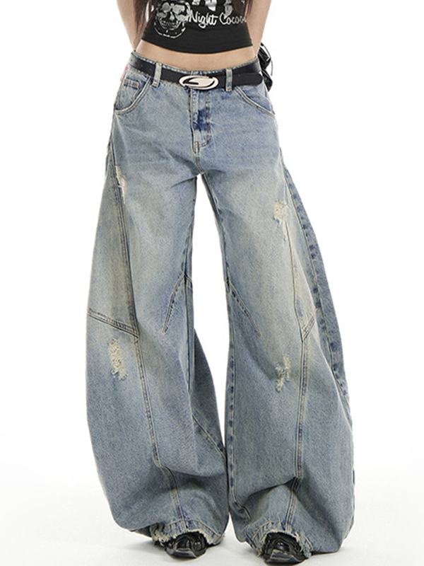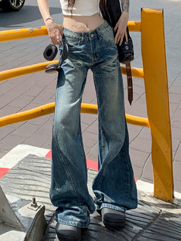 Vaqueros acampanados retro nostálgicos con rayones de la industria pesada