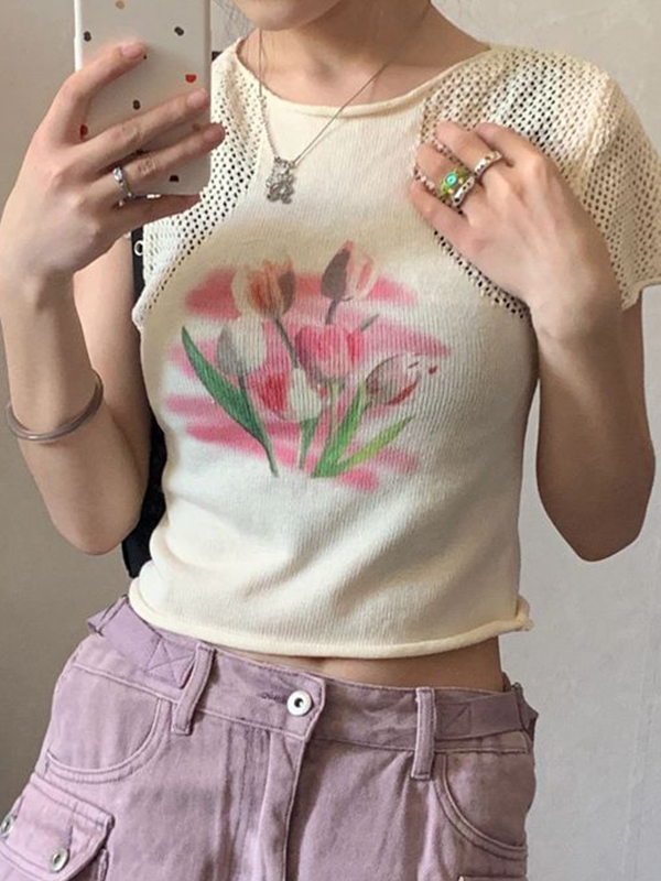 Prendas de punto de manga corta estampadas