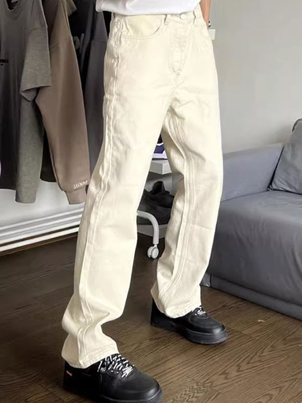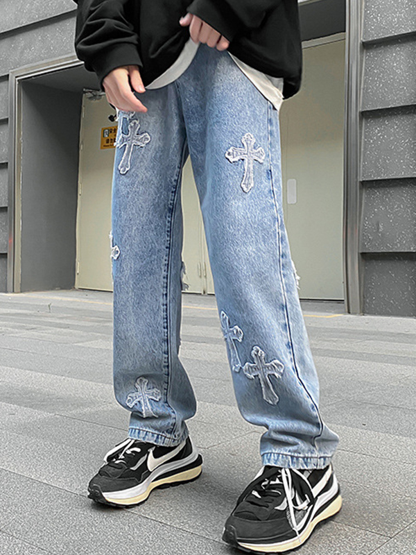 Vaqueros de pierna recta con cordón y estampado vintage para hombre